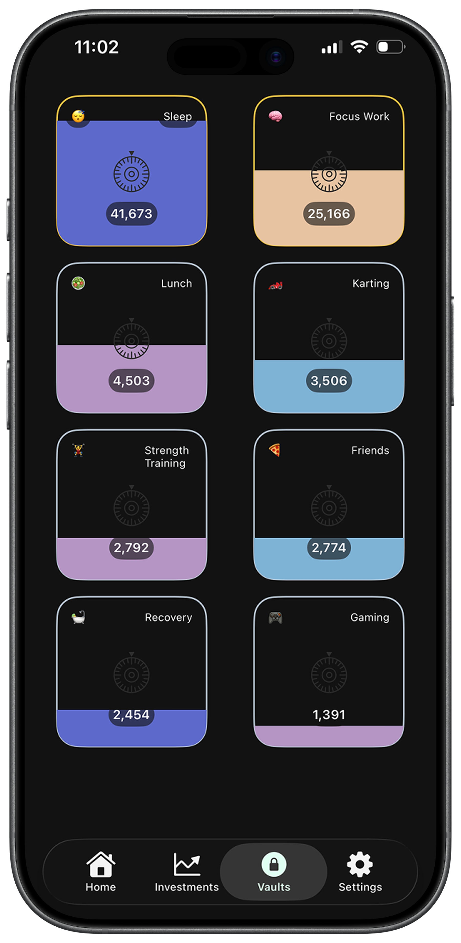 Your minutes transform into visual charts, daily streaks, long-term vaults. You don’t just track time, you understand it.